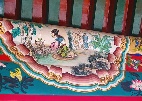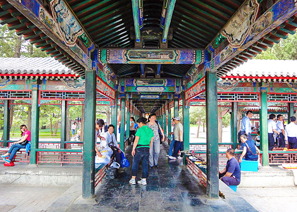 长画廊反映了明朝和清朝的建筑特征。它是一个附件或走廊连接的主要架构。但是厨房不仅仅是链接。是世界上最长的长廊,约728米(约2388英尺)长,绕组通过不同的景观地形和扭曲的路径。你找到亮点Beauty-Left馆(六甲馆),奇怪的波纹馆(到宜兰馆),秋天水馆(湫馆)和明确的和远程馆(Qingyao馆)。走廊的柱子是装饰绘画与寓言故事在西方教堂的墙壁。