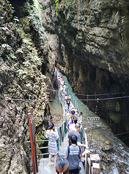 鲤鱼河峡谷拥有三个不同寻常的特点:大量的鲤鱼船只搁浅在岸上,凉爽的天气在夏天与当地居民和动物和谐相处。在峡谷上方,木板道路和浮动桥梁构造。走在木板道路和浮动桥梁,游客看到鲤鱼在游泳,在一个水下宫殿的感觉。,鲤鱼河Gorgeis覆盖着浓密的森林。他们areseen自然空调,阴影强烈的阳光onextremely炎热的天气,使一个伟大的避暑胜地的地方。与此同时,浓密的森林是超过300种动物与当地居民幸福地生活在一起。
