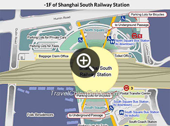 出租车停靠站位于南广场东侧、北广场西侧或-1F。