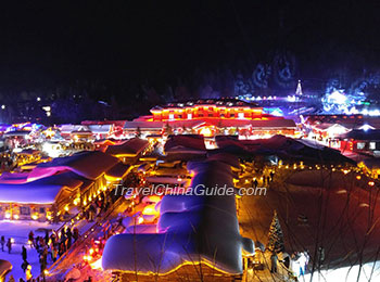 2。去那里在春节强烈建议。除了雪的场景,每个房子都是用红色灯笼和彩带装饰。在晚上,会有烟火表演,创建一个快乐、喜庆的气氛中进行。