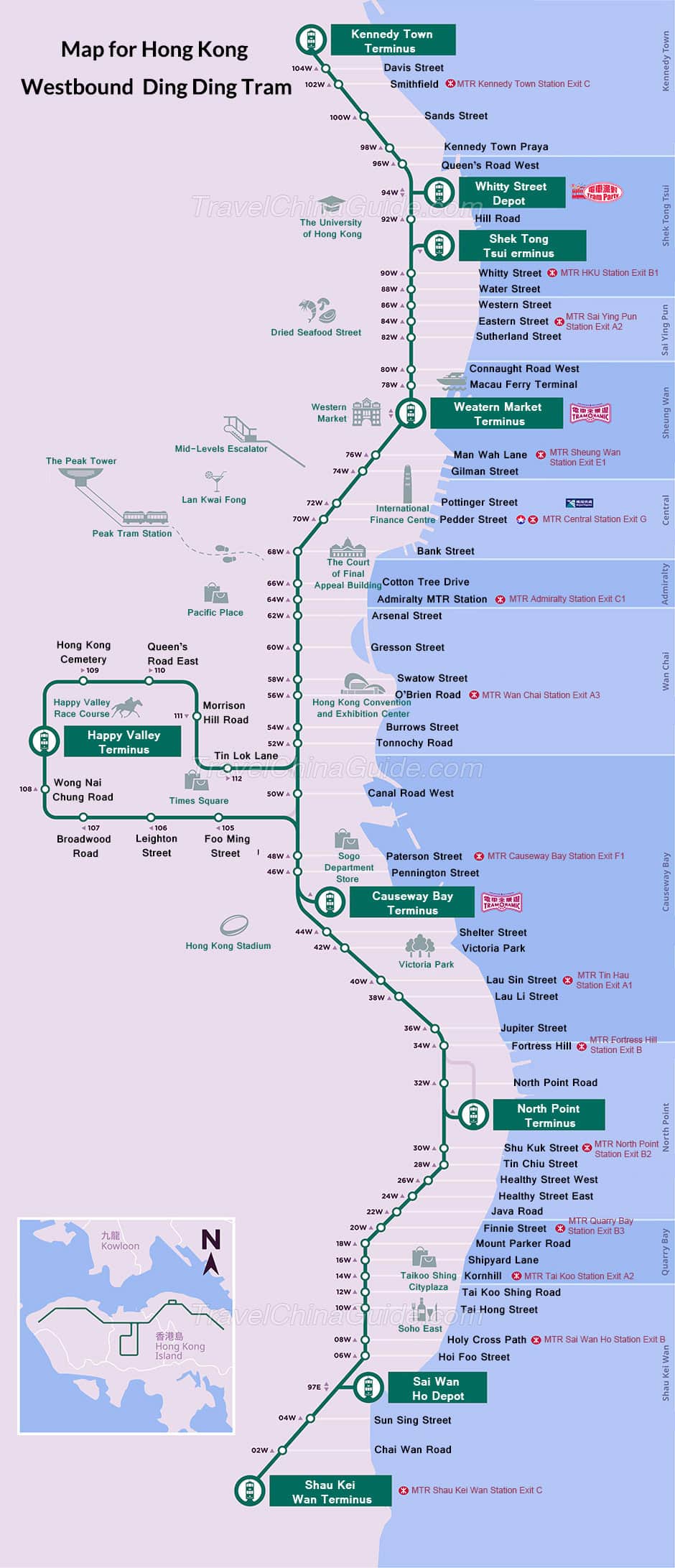 在香港哪里可乘坐丁丁电车?有轨电车穿过香港岛从西向东走维多利亚港,连接坚尼地城和筲箕湾,全程13公里(8英里)中央,湾仔,铜锣湾.