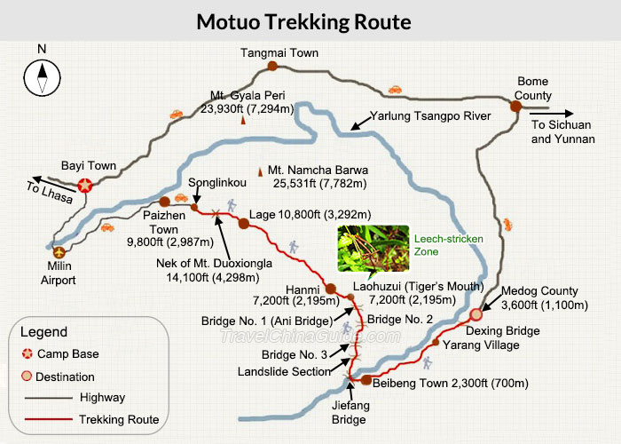 | 墨脱徒步路线地图 |