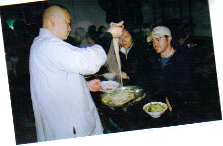 早餐的和尚太Hengshan-special邀请——僧侣为我们伟大的简单的面条——不得不很早起床——僧侣听起来很响锣宣布服务,它唤醒了我们在我们的酒店房间,我们调查和去服务和被邀请的早餐。