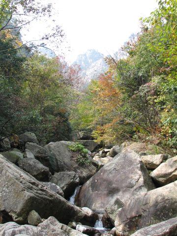这条小路在有趣的地形中稳步向上攀升。巨大的巨石,有些是人类高度的好几倍,源源不断地引导着潺潺的溪流向下流淌。有时,这条小溪到了一个平地,就会延伸成一个清澈的水池,成为一扇窗户,透过它可以看到成千上万的鹅卵石,也是写诗的最佳场所。明朝皇帝朱元璋留下了这样一句话:
