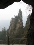 无论如何,这都不是一座“主要”山。它的最高峰不到1500米,但来到这里还是有一种乐趣。这里的景色令人印象深刻,据说与黄山相似,许多大胆的山峰漫不经心地刺穿天空。峰顶布满了岩石,狭窄得像刀刃,而松树则像神风特攻队的队员一样,在峰顶边缘摇摆。我相信当天空晴朗的时候,景色一定是壮丽的,但此时我只能透过昏暗的天空看到远处山峰的轮廓。