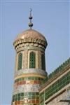 在这个中型建筑群中,最吸引人的是17世纪的方形陵墓,里面有阿坝·库贾家族的坟墓,他是喀什备受尊敬的历史领袖。陵墓四个角落的尖塔都有纱窗,每一个都有独特的几何设计,并沿着它的身体用彩色瓷砖条纹。沿着建筑外部的瓷砖装饰着美丽的花卉和几何图案,与它目前年久失修的状态形成了鲜明的对比。许多瓦片,特别是直径56英尺的穹顶附近的瓦片,不是被掠夺,就是已经倒塌。当我看到墙上有一块提醒游客当心瓷砖掉落的标志时,我笑出声来。很明显,这个地方要么没有足够的钱来维修,要么就是有腐败分子把钱吸走了。