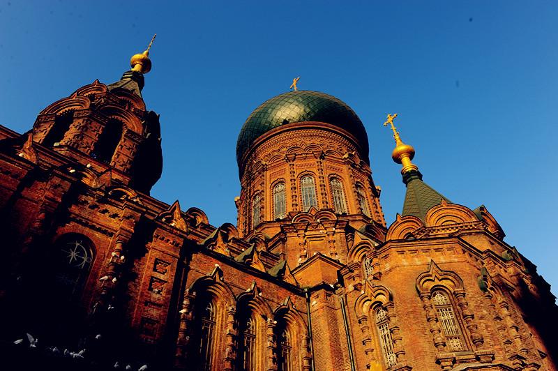 第五天我们漫步在哈尔滨中央大街,参观圣索菲亚教堂,斯大林公园和松花江。