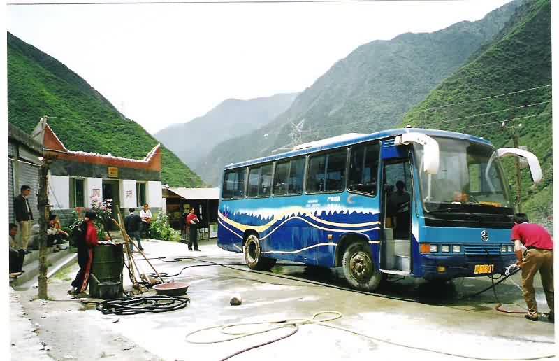 第二天早上我们遗漏了愉快的河滨酒店,早餐后与我们的主机被送到汽车站Juizhaigou约为9.00。最初的风景继续前一天一样。路从这里受到要重建几乎整个长度和我们花了一天最好的部分反弹开车成堆的碎石和凹坑路边。风景,非常壮观,有趣的是我们通过小城镇和少数民族村庄周围非常多产的农田和果园,有平地。进一步北河变得越小,我们还爬的小山上出现高度。