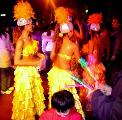 新的“阿拉伯之夜”舞蹈表演结束后大约10点,一些观众参加了在舞台上喷洒泡沫,互相投掷飘带,&塑料充气棒球棒。它是安全的为他人保持远离混乱阶段,只是观察。
