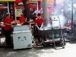我们在西安的第一天就结束了旅行。回旅社休息一下。然后我们去了当地的街道。里面太挤了!!就连我们也得和另外两个男孩共用一张桌子。一个来自延安,另一个来自玉林。他们非常友好地为我介绍了这两座城市。巴勃罗用流利的汉语与他们交谈。当然,他们谈到了皇马。太糟糕了! ! We ate so many Yang Rou Chuan, more than 100, I think. It is a nice place for nightlife, and we enjoyed the crowded, noisy, yo-heave-ho and simling.