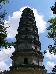 不过还不错,我喜欢这里的风景——我不仅可以看到广西南部腹地的广阔景色,还可以看到公园里几座令人惊叹的传统建筑——尤其是吉林阁,一家风格华丽的高级餐厅,只对预订好的旅行团开放,还有泰国花园,里面有一些迷人的泰国建筑。我所站的这座塔是公园里最吸引人的地方——它只是一个明朝风格的重建,然而,原来的古塔是战争历史上的一个奇怪的牺牲品,被炸毁的不是敌人,而是中国人自己,他们担心日本轰炸机可能会把它作为瞄准城市的标志。