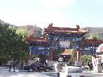 在香世寺的后面是大悲寺,它的院子里有两棵银杏树,上面挂着红灯笼。游客可以购买迷你灯笼,把它们系在树枝上,把他们的祈祷和祝福紧紧地挂在这些古老的守护者的四肢上。秋天,银杏叶在阳光下发出金色的光芒,与寺庙建筑的灰色石头和红漆墙壁相映成趣,令人难忘。这个建筑群中的一座建筑属于佛教的法轮教派,其姐妹教派在中国被禁,但在国外很有名。