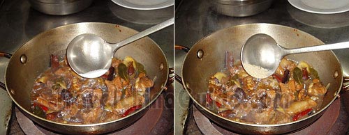 去盖,加入盐和胡椒粉,再用小火煮3-5分钟,直到汁几乎被排骨部分吸收。 |