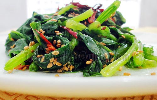 中文名称:凉拌菠菜(liáng bàn babe cài)特点:凉拌芝麻菠菜鲜香可口,绿色诱人。