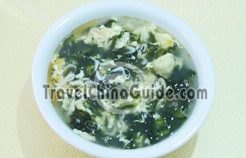 中文名称:紫菜蛋花汤(zǐ cài dàn huā tāng)特点:海带鸡蛋汤色泽诱人,口感清爽可口,香而不油。