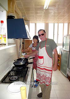 2012年5月18日,来自美国的William先生在参加我们的中国美食之旅时,在西安当地的一个家庭上了一堂特别的中餐烹饪课。虽然他只下令学做饭甜面酱肉丝只有西湖牛肉汤,热情好客的女主人给他做的菜他都参与了。他说烹饪课对他来说有点快,但这是一次很棒的经历,他真的很喜欢。 -